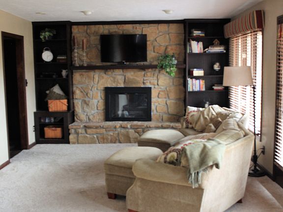 - Features: Views/Scenic, Water/Municipal Water, Appliances/Refrigerator, Appliances/Microwave, Appliances/Dishwasher, General/Ceiling Fan(s), Exterior Description/Stone, Heating - Fuel Type/Gas, General/Smoke Detector, Exterior Living Space/Porch, Sewer/City, Fireplace Description/Fireplace, Garage Description/Attached Garage, Appliances/Garbage Disposal, Exterior Living Space/Patio, Location/Cul-de-sac, Garage Count/2 Car Garage, Flooring/Mixed, Fireplace Description/Wood Burning, Fireplace Count/1 Fireplace, Lot Size/1/2 - 1 Acre, Cooling/Central A/C, Kitchen Features/Eat-in Kitchen, Heating Type/Forced Air, Lot Description/Wooded, Exterior Living Space/Deck, Age/41-50 Years Old, Kitchen Features/Center Island, General/Storage Area, Interior/Bay/Bow Window, Lot Description/Stream on Lot, Basement/Finished, Area Description/Suburban, Exterior/Fire Pit, Interior/Intercom System