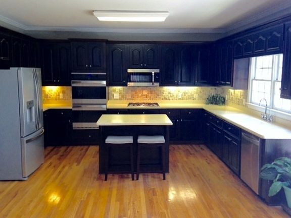 - Kitchen Features: Breakfast Bar, Cabinets Stain, View to Family Room, Stone Counters, Kitchen Island