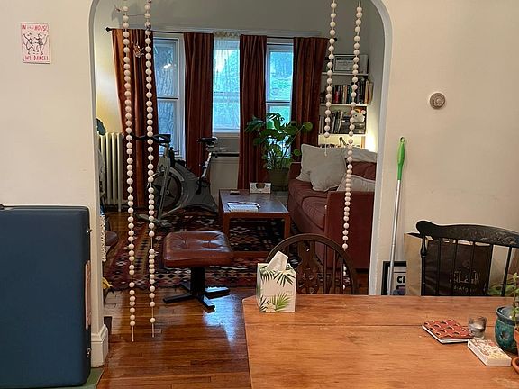 Available September! Large two bedroom apartment on the first floor. Living room and dining room plus front and back porches. Laundry machines located in the basement. Great location near Medford center, Middlesex Fells park, Mystic River, and commuting options such as highway 93 and route 2. The heating system is powered by oil.