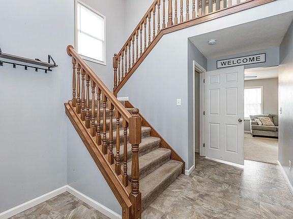 Veteran-Owned dream home in an excellent location for Crane and Bloomington commuters! This stunning, two-story home, over a full walkout basement, was custom built for the current owner, and offers many features and amenities. Let's start with the picture perfect cul-de-sac setting at the very back of Maple Run Estates, an expansive one acre lot with a backyard view of a beautiful farm field. The blacktop drive will accommodate up to six vehicles, or park in the two car attached garage or the newly built 30'x32' shop with 12'x10' WIFI enabled overhead doors, concrete floor, and a 220v hookup. The front porch is a special place to enjoy morning coffee and watch the sun rise. The 17' foyer makes a grand statement as you take in the hand crafted custom oak railing that frames the extra-wide staircase and opens into the large living, dining, and custom kitchen. This main living area features a brick, wood burning fireplace, large windows, patio doors, and a kitchen island which is the centerpoint for entertaining. Two kitchen pantries, corian countertops, modern cabinetry, karran kitchen sink, and all new appliances included. The formal dining room can be a flex space for a den, office, or guest space. The laundry is situated perfectly near the garage and main floor half bath. Upstairs you'll find a large loft/flex space with a closet, a full bath, and three spacious bedrooms. The primary bedroom includes a four piece ensuite with extra large jetted soaker tub, walk-in shower, and a dual sink vanity. Let's not forget the walk-in closet the size of a bedroom. The walkout basement is unfinished and plumbed for a bathroom and ready for you to make it your own or leave it as a game room and workout space. Abundant closet storage, all new appliances stay, underground dog fence, yard barn, workshop, and picture perfect curb appeal. HSA Home Warranty.