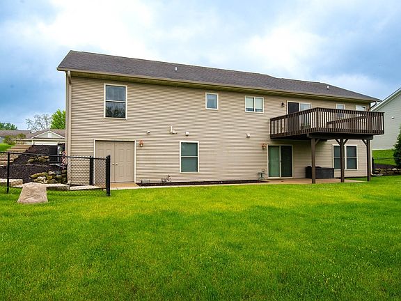 23'x8' front porch welcomes you to this spacious ranch-style home (2"x6" exterior walls)finished walkout basement. Split bedroom design,"open" kitchen with island, eating area and living room,wood deck at main floor level; concrete patio below.Master suite with large walk-in closet, tub, separate step-in shower. Large first-floor laundry, cedar closets, newer carpet, 24'x24' attached garage. Lower level has 3rd BR, family room, office/exercise room,1/2 bath,14x24 utility/storage room with double door exit. Fenced back yard overlooking pond. Lovingly maintained (furnace serviced every year, lush lawn,clean inside &out.Parks and the twins (Elizabeth & Mary) nearby. Lake Geneva, Powers Lake, Hwy 12 are minutes away.