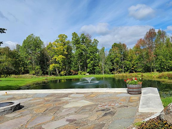 Classic 1880s Ellis Hollow farmhouse, updated and furnished! Original wide plank hardwood floors. Downstairs has a mudroom/entryway, large living room with wood-burning stove, eat-in kitchen, full bath with laundry, a dining room (easily convertible to a 4th bedroom with closet, or an office/den), and 3 season sunroom. Upstairs has another full bath and 3 good sized bedrooms. Property is 25 acres total including a large wooded portion with a small seasonal creek and trails, landscaped ~5 acre backyard with a fieldstone patio, fire pit, and large pond with fountain. All within easy drive to Cornell, East Hill Plaza, and downtown Ithaca. The property spans Ithaca and Dryden school districts so either is an option! Tenant is responsible for snow removal (short driveway!) and all utilities. You will need the internet as cell service can be sketchy (it works with one of our lines but not another). Landlord will provide for yard/lawn maintenance. The large barn on the property is not for use/access by the tenants. Pets ok with additional deposit. Absolutely no smoking. Prefer to have lease begin in August and run through next summer, but could start a lease as early as May are can be flexible on duration provided the lease end date falls between May 1 and August 30. Application including background and credit checks required, paid by prospective renters. Please note Zillow applications are not accepted and I am unable to post the link here, but can quickly send on request.