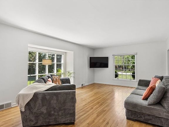 CLASSIC, MANVILLE CHARMER located on quiet, cul de sac and beautifully treed neighborhood. This 1945 two story home offers 3 bedrooms and two baths on the upper level and main floor bedroom suite with private bath. Wonderful ambience is created with large windows providing outstanding natural light, lovely hardwood floors throughout the main and upper levels and newly painted interior with a hue of serenity. The main level offers a light-filled living room with wood-burning fireplace, dining room with built-in hutches, updated kitchen with 5 burner gas range and white painted cabinetry, delightful sunroom with views of backyard. The lower level has a retro knotty pine paneled family room with bar and a half bath. Sunroom and kitchen allow easy access to the back patio and the backyard for outdoor enjoyment. Gracious home situated in premier Manville location, this home is sold "As Is", to be continued by the new owner.