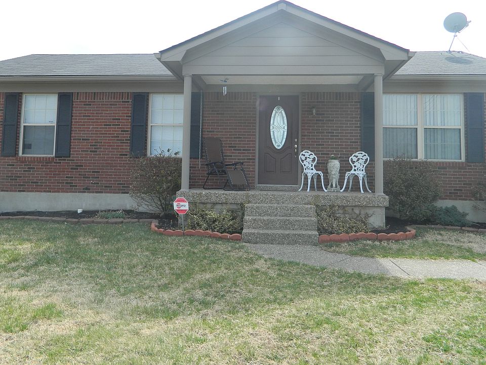 Move right into this adorable 3 Bedroom Brick home that offers open vaulted kitchen/ family room area. Fantastic Kitchen space with lots of cabinets and counter space with nice appliances. Convenient laundry area off kitchen. Door from kitchen provides access to huge backyard that is fully fenced with tool shed. Spacious Master bedroom has 1/2 bath. The other two bedrooms are nice size. Beautifully decorated throughout ! There is a covered front porch, beautiful landscaping and concrete drive with extra large parking area. Wonderful neighborhood in convenient location. Bullitt County Schools, steps away from Bluelick Park and Bluelick community garden.