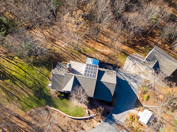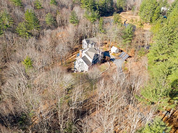 Fantastic Modern Contemporary home privately set in the Bedford community. Original owners with recent updates, this beautiful & light filled home has many desirable features. Large cooks kitchen with granite & several great features opens to vaulted fireplace living & dining area. Light filled 3 seasoned porch looks to serene woods and stream with original grist mill wall. 1st floor Master with lots of light and large closet space & full-bathroom. 1st floor also has a large laundry, mudroom & office. Soft curved walls lead to an angled stairway to 2nd level opening to living below. Large open 2nd floor landing area for extra living/office space & additional 2 bedrooms. A 4th bedroom/media room and updated bathroom. 2nd level has yet another large space for future finishing which could include another bathroom. Not to be outdone, the Lower Level has a great amount of light with 2 sets of glass double doors and windows looking out to the picturesque back of home; one finished large room with a fireplace; another large room with little to do to finish; another used as a craft room. Also a great hidden gem- a wine cellar with a cooling unit that holds 1100 bottles! Detached 2 story building works wonderfully as a workshop, exterior office or other- has its own electric panel. Home includes solar panels for energy sourcing 50% of the home, as well as an automatic whole house generator, and more. Unique home in impeccable condition with room to grow.