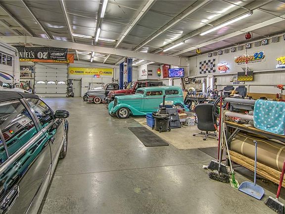 Amazing home! 120 x 80 Metal building with a 3,085 SF gorgeous home inside, + a 6,598 garage. Home has vaulted ceilings, granite counters, lg master bath, 12'10 x 7'3 walk in closet, walk in pantry, Lg laundry with utility sink, tank-less water heater, 9 foot ceilings, 30 x 12 screened porch, 52'6 x 18'8 game rm, circle drive. Garage 2 garage doors, 1 is 14 foot, wash pit, 1/2 bath, storage cabinets, a 13 ton HVAC, circle drive. Special purpose business allowed. Horses welcome!