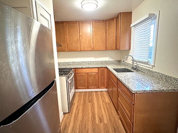 Cozy one bedroom/one bathroom unit available in Richmond, CA. This unit has a spacious living room that gets an abundance of sunlight throughout the day. The recently remodeled kitchen features granite countertops and wooden cabinets and a designated dining space right outside of the kitchen as well. The bedroom has a built in closet and there is a closet in the hallway for extra storage. Hardwood floors throughout the unit and all windows are brand new and double paned. This unit also includes a garage shared with one other unit with space for one vehicle. Street parking is also widely available. Easy access to fitness centers, grocery stores, laundromats, public transportation, and freeway entrances. Lease term: 1 year Security deposit due at signing. Landlord covers garbage, tenant is responsible for all other utilities. No pets. No smoking.