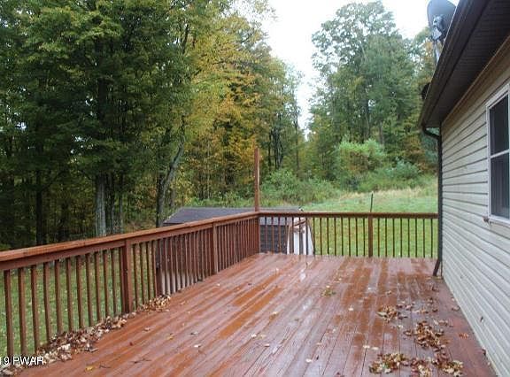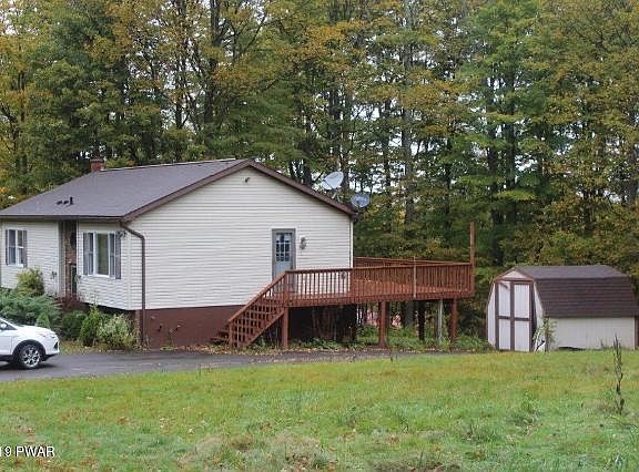 Perfect starter home on 2 very nice secluded acres. Bank Foreclosure, BUT you would not guess it! Just a little elbow grease will get This doll house shining and looking like a million bucks again! Features 3 bedrooms (one is in lower level), 2 full baths, living room with Hardwood floors and an open kitchen/dining area with slider leading out to expansive deck. The master bedroom is on the main level AND so is the laundry room! Home has oil heat and a finished family room with T&G walls and a flue for a future wood stove. Outside is a shed and a small garage for storage. Come take a look. You won't be disappointed!