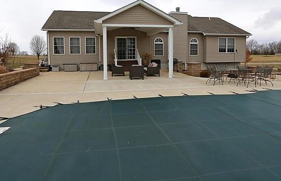This is the home you've been waiting for, it's the " Total Package". Spacious ranch style house, inground swimming pool, 40x50 detached building/workshop & situated on 3 level acres of ground. The 1900 sq ft home features a brick front, 3 car attached garage, 3 bedrooms, 2 baths main floor plus a partially finished walkout basement w/possible 4th bedroom, a framed workout rm and 3rd full bathroom. The master bedroom suite has a cathedral ceiling and offers a walk-in closet, a private luxury bath w/double sinks & Jacuzzi tub/shower. The Great rm and Dining rms are open to each other and feature a cathedral ceiling and a woodburning fireplace flanked by circle top windows. The rear patio area is designed for entertaining, complete with a covered porch, inground, heated, salt system pool with lighted custom stone decking around it. The detached garage/workshop is a car buff's dream, it's heated and has rough-in plumbing for a bathroom plus extra tall overhead doors and plenty of parking.