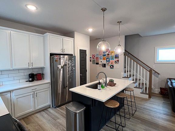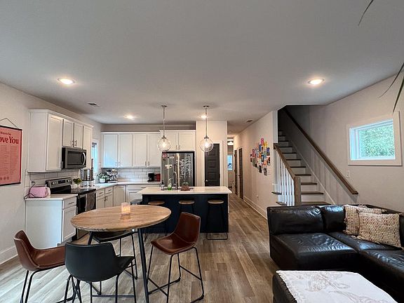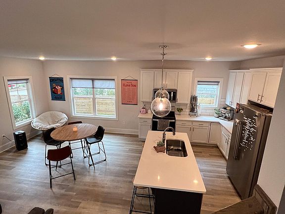 The home was built in 2021 and offers a large master bedroom with a walk-in closet, one very large bedroom, and two standard-size bedrooms. One of the bedrooms is located on the main floor and three are upstairs. The home is very welcoming with lots of windows and natural light. The kitchen has all new appliances and a large center quartz countertop where you can place barstools for additional breakfast space. The living room is surrounded by 6 windows with natural light and is very inviting to relax and connect with your friends. The home has laminate flooring throughout... no carpets!