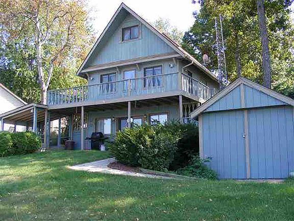 Quaint year round home on large water front lot plus back lot with garage & workshop! Enjoy beautiful lake views from the wrap around deck & new water front deck. A great buy on an all-sports lake only a few minutes from I-69 and IN Toll Road. All offers are subject to lender approval.