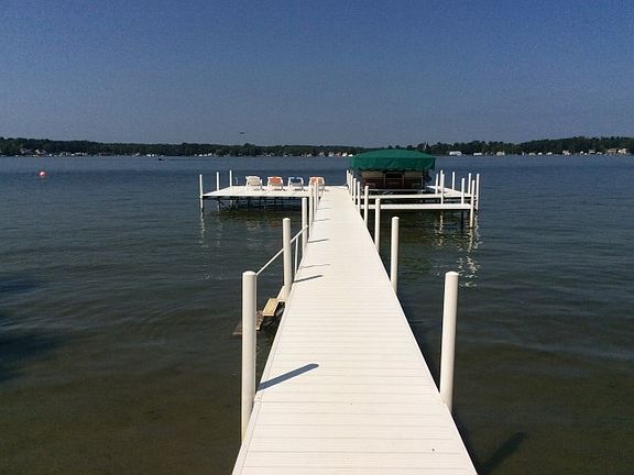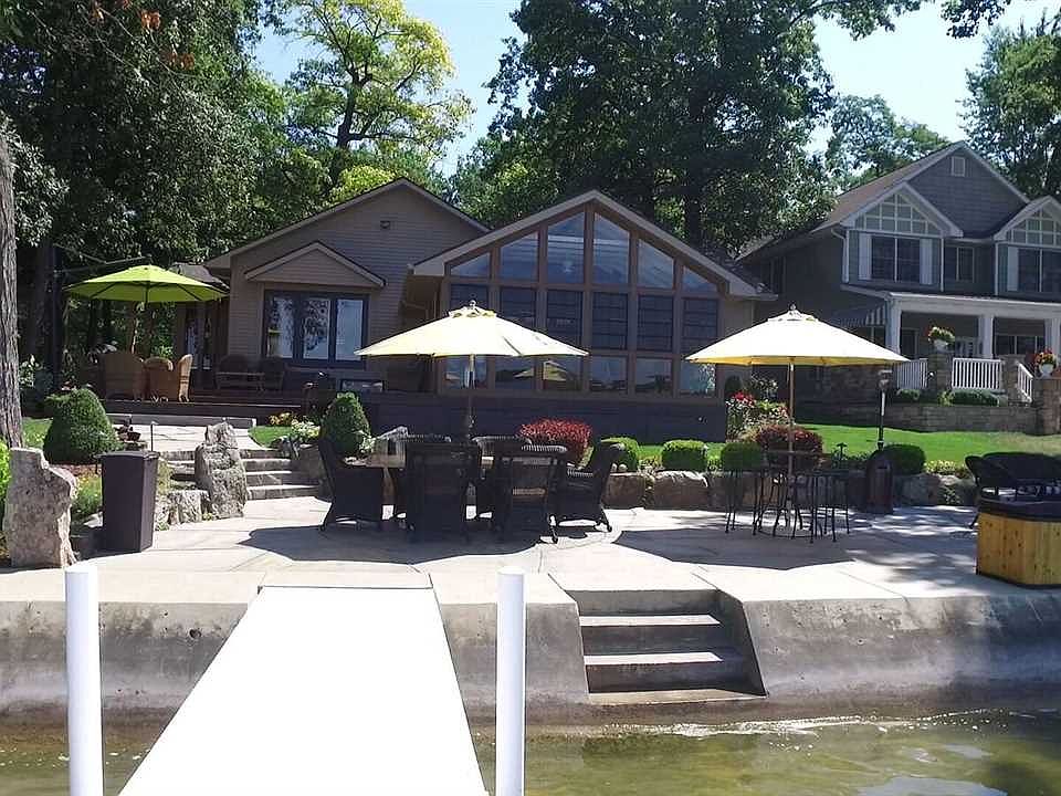 This property is turn key as all indoor and outdoor furniture, boat lift and canopy, boat, and dock are included as part of the sale! Full House Generator, Harlan custom kitchen cabinets, Kitchler Outdoor Pathway lighting throughout the landscaping, three season room with PGT-EZE Breeze windows, are just the tip of the ice burg as far as amenities offered with this property. If you are looking for a home on the Gold Coast, this might be your last chance! These homes aren't available very often. Don't miss the opportunity! This home is designed to provide the best of lake entertaining. With a low maintenance Trex multi-level deck, large natural stone patio and three season room, you’ll have ample space to enjoy lake living. This three bedroom, three bath home is on a partial basement with 70 feet of frontage of the desirable Gold Coast of Crooked Lake.Extending more than 190 feet from the shore line, the firm, sandy beach is great for swimming, water volley ball, or just floating on a raft. Boasting the most beautiful sunsets on the lake is what earned the Gold Coast it's name. Located on a private dead end lane, there is light traffic providing a safe place for biking, walking, etc. There is hard surface parking available for approximately 16 vehicles with even more parking space on the grass area of the back lot. The property also includes not only an over-sized, insulated and heated detached 2-car garage but a back-lot with 40 x 30 pole barn! Schedule your private showing today! Make sure you check out virtual tour for Drone Aerial shots of the property. https://youtu.be/YIr4lj-Z9ks