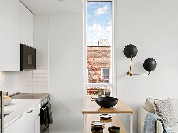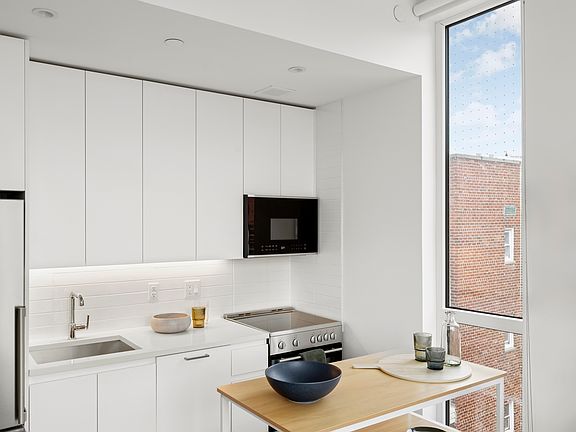 Apartment - Corner unit with South & East exposures - Oversized, floor to ceiling windows - High ceilings - One King sized bedroom & one Full size bedroom - In unit washer and dryer - Central heating and air conditioning - Blackout shades in the bedroom - Solar window treatments in the living room - Deep pocketed closet spaces Kitchen - Island - Stainless steel appliances - Dishwasher - Microwave - Quartz countertops - European cabinetry - Signature fixtures Bathroom - Deep soaking tub - Textured white subway tile surround - European white oak vanity - Ample storage Amenities - No amenity fees! Virtual Doorman Fitness Studio, featuring Peloton Fashionably designed co-working lounge with private call rooms Landscaped Sky Lounge fully appointed with two BBQs, wet bar, dining areas and sunchairs Garden Terrace Package Room with Amazon lockers Beautifully appointed, double height Lobby For rent Private Parking from $300 Bike Storage $15 Welcome to Cirrus Introducing the newest and most stylish rental offerings situated in the heart of Brooklyn's best kept secret neighborhood PLG! Proffering spa inspired common spaces, abundant amenities and thoughtfully designed apartment living, Cirrus sets the standard for exceptional urban lifestyles in this ever evolving, vibrant community; the next "it" place to be. Residences The Ultimate Urban Retreat Designed with airy and minimalist sophistication, each home is enveloped in oversized windows presenting extraordinary natural light and spectacular views! You'll have your pick from Prospect Park's leafy treeline, Manhattan and Downtown Brooklyn skylines, fun streetscapes or even Southward toward Jamaica Bay and the Verrazano bridge. Each unique layout ensures optimized living and an ambience everyone will enjoy. Bright, white, open plan kitchens seamlessly blend into expansive, neutral palette, great rooms befit your personal touch. Let your inner designer go wild playing off the contrast between stark white interiors and the clearly visible azure blue sky. Graciously sized bedrooms are perfect for those who've dreamed of the ultimate NYC amenity, a king sized bed, and storage will be a breeze with deep pocketed closet spaces! Streamlined bathrooms offer European vanities, deep soaking tubs and textured white subway tiles accented by stainless steel fixtures. High ceilings, central heat/air, integrated lighting and in-unit washer/dryers round out the homes for a truly indulgent living experience. Neighborhood Discover the tranquil beauty of Prospect Park a short and picturesque walk from Cirrus' front door. Perfect for the nature lover, outdoor fitness enthusiast and picnic devotee, residents will relish in this unique and lush green space; the largest in Brooklyn. Known for its charm, the neighborhood shows off architectural prowess through an amazing juxtaposition of historic homes, pre-war buildings and newly developed properties dotting its tree lined streets; attracting residents from all over the world. Hidden culinary delights can be found throughout! From trendy cafes to a diverse array of upstart eateries helmed by rising star chefs and authentic Caribbean establishments, let your inner foodie explore! Small boutiques, a vibrant nightlife scene and tight knit artisan community combine to ensure a welcoming atmosphere. Transportation Transportation options into Manhattan and all points throughout Brooklyn and Queens abound via the area's multiple subway stations