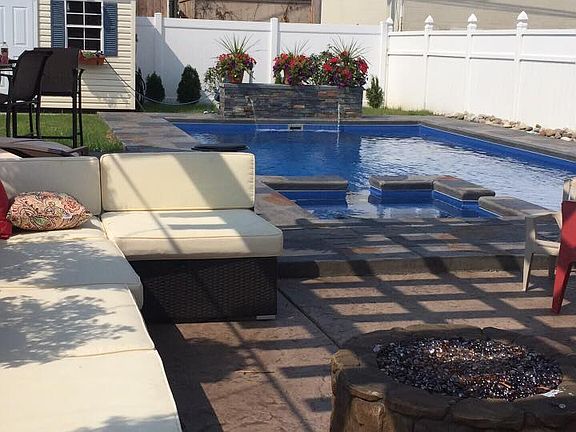 Twin type home. 3 bedrooms, full bath, 1 st floor powder room, New flooring throughout first floor. Hardwood in Living room and dining room. Waterproof vinyl wood plank flooring in foyer and kitchen. Brand new kitchen and powder room in 2019. New bathroom in 2017. In ground pool with spa, outdoor bar and pergola seating area with propane firepit, covered outdoor patio. Large master bedroom.