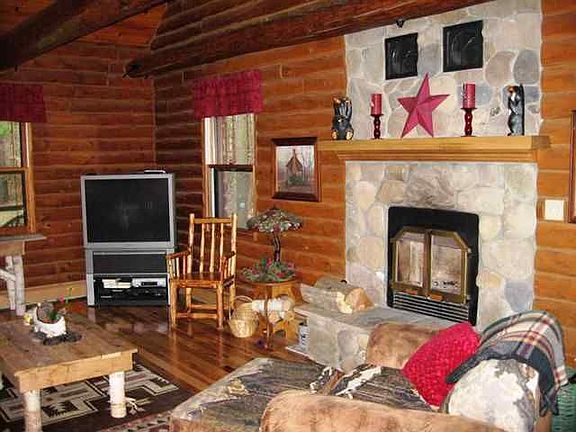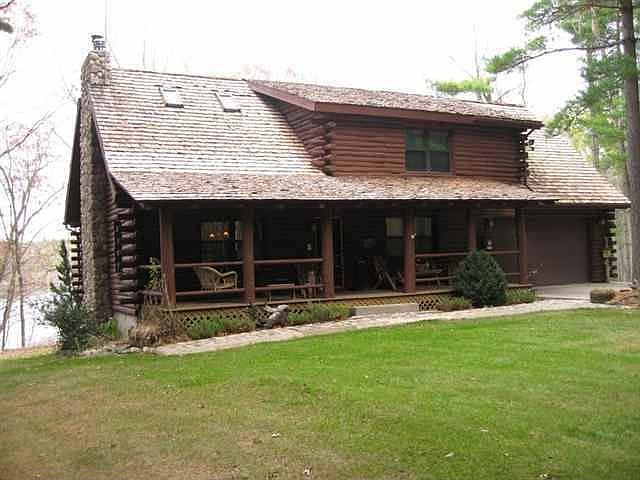 If you are looking for peace and quiet in a one of a kind setting, look no further. This place is like being in the Upper Peninsula of Michigan but without the drive. The setting is all mature pines on a lakefront lot with 170 ft of pristine sand beach with views that are 2nd to none. This log home is one of the originals homes at Pine Canyon Lake and has been named Whispering Pines Lodge which describes the property to a T. Awesome home with 4 bedrooms, 3 full baths, floor to ceiling filed stone fireplace, 2 car attached garage and all on a full finished walkout lower level. The home is heated with gas hot water heat and cooled with central air conditioning. Some of the amenities include 3/4 inch sold hickory wood flooring throughout, custom rustic maple 3/4 inch dovetail cabinets, all stainless steel appliances, full width covered deck, and much, much more. This is a hand hewn fully insulated log home that was built in 1988 with the finest of craftsmanshi