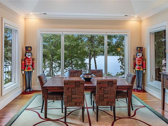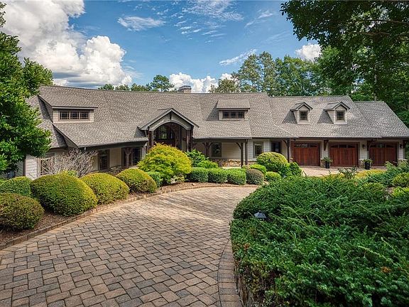 This gorgeous lake front home is perched on two lush acres in Cliffs Keowee Falls South with 400+ feet of shoreline and 180-degree views of Lake Keowee from almost every room! It features a dramatic, bright and open floor plan with wood beam accents and large floor to ceiling windows and doors overlooking the lake. The style is timeless, a perfect mix of Craftsman with Modern Classic. All this adds up to a grand 4 bedroom, 4 ½ bathroom 6,000 sq ft home that is both stylish and comfortable. A perfect lake house! The main level includes American walnut floors and high end finishes and details throughout, and is perfect for entertaining with a very large great room with two seating areas, kitchen with bar and extra-large pantry and dining area with great lake views. A double-sided fireplace sits between two dramatic stone archways and can be enjoyed from both the great room and kitchen/dining areas. An added bonus are two separate office/den areas on the main level along with a powder room. Just steps from the kitchen is a lovely outdoor room overlooking the lake - perfect for a morning coffee, reading and entertaining while taking in the beauty of the lake. A huge 50' balcony/deck off the family/dinding overlooks the lake and the lush landscaping with a water feature. It features 6 waterfalls flowing down through massive boulders towards the lake. It is a magical focal point--especially with lights in the evening.. The large master suite is elegant and also enjoys long lake views. The master bath is a place you'll want to relax and enjoy with a lavish tub and oversized shower. A true SPA like experience. A spacious laundry room is conveniently located next to the master. The lower level can be reached via the wood-paneled elevator near the kitchen or the uniquely designed stairway. A huge den/game area with 10 ft ceilings, a large stone fireplace, and kitchenette/bar is perfect for family fun and watching your favorite sporting events. Your guests may never leave once theyâve experienced the two large en-suites, each with beautiful views of the lake and private outdoor spaces. The two guest suites are on opposites sides of the lower level for additional privacy. A large outdoor patio with access from the game room and guest bedrooms is where you will most likely find your guests taking in the beauty of the lake. There is a second laundry room on lower level, which is perfect for all the bathing suits and beach towels after boating and time at the lake. Donât miss the large workshop area, storage room and space for a golf cart, utility vehicle and boat toys, all located within the unfinished area of the lower level. Make your way to the dock and all the views that await. Meander through the water feature or take a cart down through the natural path. There are so many places to perch and enjoy along this of shoreline. Youâll also be treated to gorgeous views of the foothills of the Blue Ridge Monuntains. The perfect place to be for sunrise & sunset! A bonus fourth bedroom suite is located above the 3 1/2 car garage, a pefect place for grandchildren w/ niches and rooms they will adore - let the fun begin! The high quality of this home is evident when you walk through the gorgeous front entry â unique windows and wood set the tone for what you'll see throughout this home. It has been very well-maintained and a new roof was installed in September, 2020. It is ready for you and your family to move in and start enjoying this pristine lake and all the wonderful amenities offered in Cliffs Falls South and the other 6 Cliffs communities.