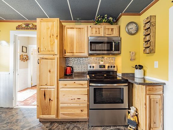 Charm & character! Wonderful home near center of town - walk to shops & restaurants. Eat-in kitchen with hickory cabinets, stainless steel appliances & access to large porch. Cozy den offers the possibility of utilizing as a first floor bedroom if you need. Stylish dining room with chandelier, silk plaster ceilings & shiplap! First floor full bath with tub, tile floor & separate powder room. Main floor laundry. Open floor plan family room on the second level with so much natural light, ceiling fan, updated hardwood laminate flooring & access to the second floor front to back enclosed porch. Master bedroom with updated lighting, flooring, custom ceiling, vanity area & walk-in closet. Additional bedroom with new carpet. Beautiful bathroom with neo angle shower & shiplap. Third floor has two large bedrooms. Dry basement with pellet stove. Exterior features include Ring doorbell, newer roof, aluminum siding, replacement windows & storage shed.