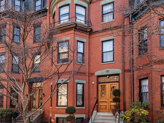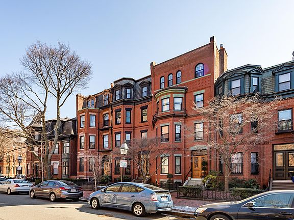 Sophisticated Marlborough Street townhouse exuding refinement & offering innumerable modern conveniences set against the grandeur of Back Bay's classic architecture. Renovated & restored w/ the utmost attention to quality, design & detail, the home features period moldings, high ceilings, original restored hardwood floors & doors, a magnificent staircase topped by stained glass skylight. The 5 bedroom home, on Back Bay's most charming street, offers over 4,400 sq feet of exceptional living space, featuring timeless, formal entertaining rooms with butler's pantry on the parlor level. The lower-level boasts a casual family room, a state-of-the-art chef's kitchen that leads to an exquisitely landscaped slate patio. The 2nd level floor-through primary suite boasts an spa-style bath, custom walk-in closet & fireplace. 4 sunlit bedrooms on the upper floors with 2 full baths. Laundry room, generous storage space, 2 powder rooms, central AC & 2 full parking spaces adjacent to the patio. A true beauty! Pets negotiable.