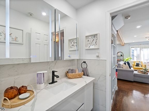 Welcome to this beautifully maintained, fully fenced-in home featuring 3 bedrooms and 2 full bathrooms in the heart of Carlstadt. The first floor boasts an open-concept living and dining area, an updated kitchen with stainless steel appliances, one bedroom, and a full bathroom perfect for guests or one-level living. Upstairs, you'll find two additional bedrooms, while the finished basement offers a spacious family room, home office, laundry area, and another full bathroom ideal for working from home or extra living space. Enjoy hardwood floors throughout, central air conditioning, and the convenience of an in-home washer and dryer. Step outside to your backyard oasis, complete with an above-ground pool, storage shed, and bi-level patios perfect for entertaining and relaxing while enjoying views of the NYC skyline. Located just a few blocks from Route 17 and the Wood Ridge train station, this home offers a quick 30-minute commute to NYC, along with close proximity to local shops and restaurants. Don't miss this exceptional property with low taxes schedule your showing today!