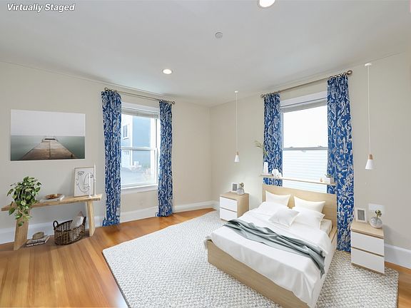 Welcome to 340 Medford St, Unit 2. This sun-drenched Penthouse 3+ BR, 2 BA duplex boasting over 1,700 sf w/1-Car Parking right outside your door + 2 Private Roof decks checks off every box. Beyond the beautiful blue clapboard exterior, you will find a spacious living room bathed in light accented by a gas FP, bay window & plantation shutters which flows graciously to an open concept dining area and chef's kitchen showcasing shaker style cabinetry, quartz counters/subway tiled backsplash, SS appl & an amazing customized walk-in pantry. A generous sized BR, separate home office and full bath complete this level. The upper floor features a king-sized Primary BR w/both a huge W-I-C + a French Door dressing room w/built-ins, a Guest BR w/large private composite deck, a spa-like bath & W/D. Walk up to a sensational private roofdeck w/360 degree views ideal for entertaining. Offering 4 exposures, hardwood floors throughout, huge private & secure storage room & brand new HVAC! Pet friendly!