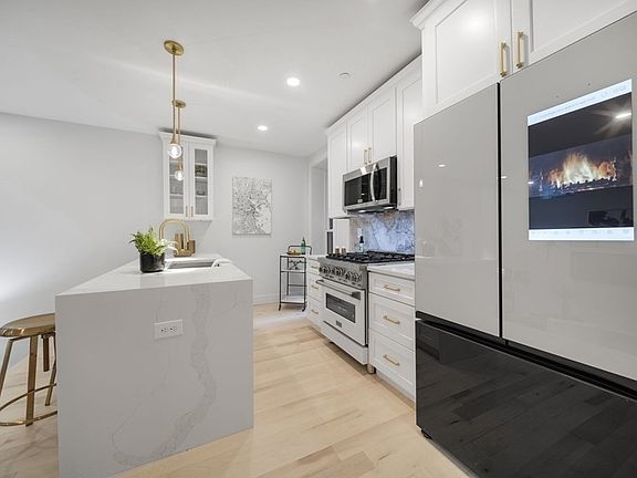 Take advantage of the Eagle Hill program with rates as low as 3.79% ends 1/3/23. Brand new, loft style 2 bed 2 bath with a den and deed storage located in the thriving Eagle Hill Neighborhood of East Boston. This large 1200+ sqft unit is located one train stop away (short walk to Blue Line/ Maverick T) from Boston Proper. The condo offers a spacious kitchen with a quartz waterfall island and vented hood with an open living/dining space great for entertaining, 16Ft high ceilings in the living room, private back patio, large master bedroom with en-suite bathroom and walk-in closet. Additional features: deeded storage, Alexa enabled intercom, Samsung smart fridge, Nest thermostat, fingerprint door entry, Delta sinks/faucets, James Martin Vanities, multifunctional smart mirrors, high/end designer light fixtures throughout. Location is a couple blocks away from Liberty Plaza convenience and easy access to the 1A tunnel entrance.