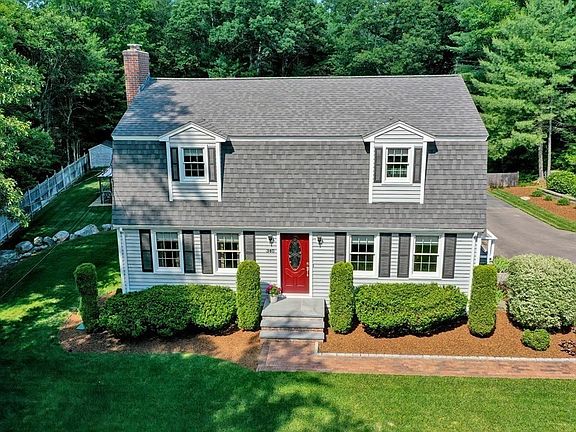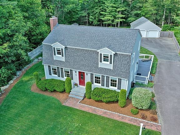 Meticulously maintained gambrel colonial style home nestled on 2+ picturesque acres along a scenic road. All the major updates have been made; new roof, heating & A/C systems, hot water booster tank, windows & more; just ready for your personal touches. Kitchen features oak cabinets, granite counters, work island, tile flooring & stainless-steel appliances & access to wraparound deck; convenient breakfast bar opens to dining room, a lovely space for enjoying family meals. Front-to-back Fam Rm with floor-to-ceiling brick fireplace, the focal point, provides warmth & ambiance. Full bath completes 1st level. Spacious Main Bedrm is front-to-back with double closet. 2 additional bedrooms & main bath with jetted tub & corner shower complete the 2nd level. Beautifully landscaped yard w/ perennial gardens, shrubs, stone walls, patio & gazebo; Irrigation System. Cent Vac, Cent A/C, Security Sys. Heated oversized 2C garage has lots of storage space. Convenient to T-Station, shopping & highways.