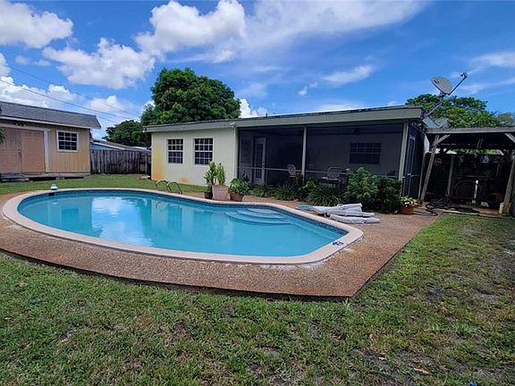 MAKE THIS BEAUTIFUL, BRIGHT & REMODELED HOUSE WITH POOL, YOUR HOME!!! Located in very nice and quiet area of Hollywood. 3 good sized bedrooms with plenty of closet space. Gorgeous new tiles Flooring. Recently remodeled kitchen. New Stainless Steel Appliances. Impact Windows and Doors. Large screened in patio overlooking the back yard & the pool just perfect for entertaining. Sprinkler system. This place comes with a BONUS !!!! A large shed that can be used as a storage or you can turn it into an efficiency.