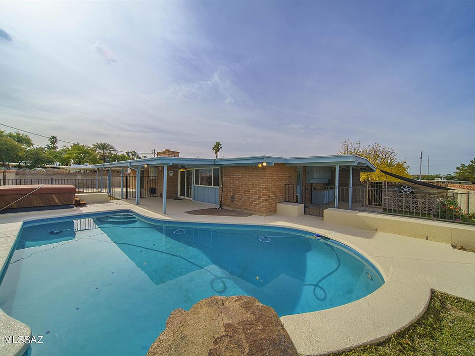 Pride of ownership shines brightly in this beautiful home on .21 acre corner lot. Large LR & Inviting Family room off Kitchen w/Cozy Gas FP. Spacious Kitchen w/Granite countertops, stainless appliances, & Exquisite mountain views from an extra large window that looks into the yard which features extended covered porch, sparkling pool, & Jacuzzi. 3rd Bedroom has built in Murphy Bed. Primary BR w/sliding door out to covered patio. Primary Bath w/walk in shower and beautiful granite counter top. Extra large laundry room w/storage & Pantry cabinets. Outside of Laundry room is private yard w/outdoor workshop & fragrant roses. Huge 4 car tandem garage w/built in cabinets . New solar w/25 yr warranty. Solar pool heater. Rainsoft water filtration system. Roof recently coated & deck resurfaced.