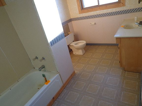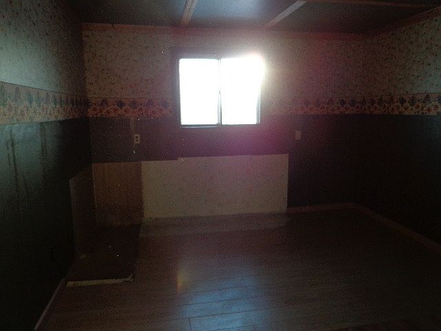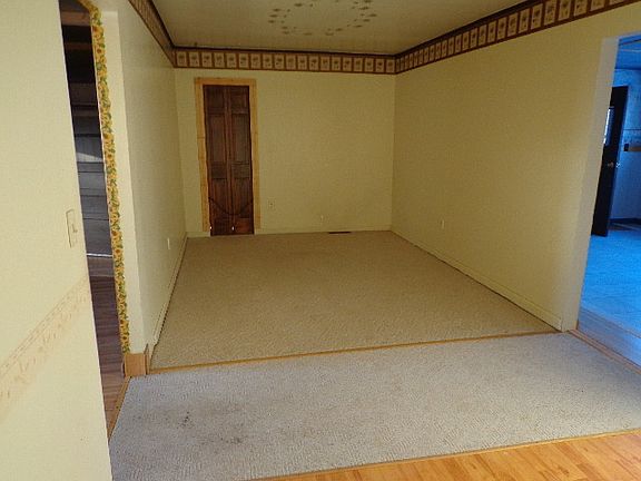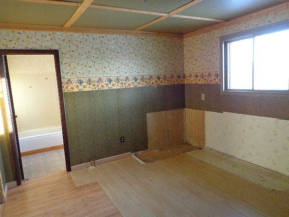 Exterior Features:This is a one story house with part of the basement at ground level. The house has wood paneling siding and an asphalt shingled roof. The property has no garage or outbuildings. There is a lean-to on the side of the house.Interior Features:The interior of the house is in good condition. In the first unit the kitchen is bare with wood floors. This unit includes two carpeted bedrooms, a carpeted dinning room, and a lenoleum floor living room. There is a carpeted common area in the front of the house. The second unit has a fully intact kitchen with lenoleum floors and an oven. The living room has wood floors and a brick fireplace. The three bedrooms are all carpeted while the bathroom has the lenoleum floors. The dinning room contains wood floors.Mechanicals: two furnaces, two hot water heaters, oven