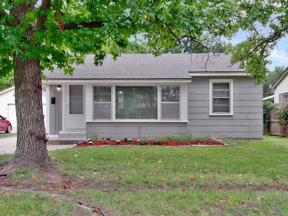 GREAT First Time Buyer HOME. 2-BEDROOMS 1 BATH 1-CAR -- 11x12 Basement/Cellar STORM SHELTER & STORAGE. -- ALL APPLIANCES STAY including WASHER & DRYER. New FLOORING in Living room and Bedrooms -- Home has Oversized Detached GARAGE. -- Large windows in Living room provide plenty of light. Back Yard is Partially FENCED. -- Note the HVAC & Sewer were recently serviced. The home was also treated for termites this Summer -- Short Walk to the Arkansas River Bicycle Path Bridge to Sims Park, Botanica and Cowtown. Close shopping on Central Ave. Easy Drive to City Center, Also Near ARC of Sg Co, West Side Athletic Field and Friends University.