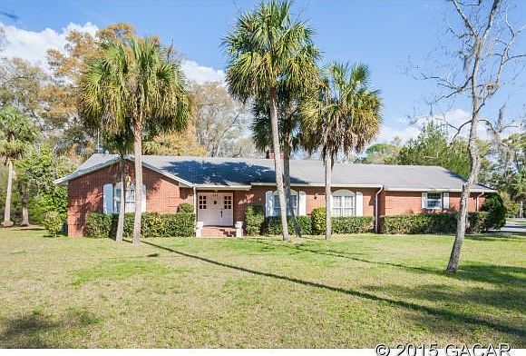 **Under Contract - Backup offers accepted** Classic beauty, 2500 sq ft brick home well-located on a 2.4 acre corner lot. Property is centrally located between Gainesville (19 mi) and the Gulf of Mexico (32 mi). Move in ready, 3 bedroom, 2 full bath, 2 half bath & 2 car garage home. Foyer entry, separate living/dining room, family room features brick fireplace & opens onto a covered screened patio. Walk in closet, Jack-n-Jill bath, Breakfast nook & spacious utility room off kitchen. Small town living at its best â EXPLORE THE POSSIBILITIES â 2 large out buildings, 25x33 building with garage, 32x36 building with RV bay, boat bay and private workshop. Property even has it own small grape arbor. Need room for your hobbies or home based business