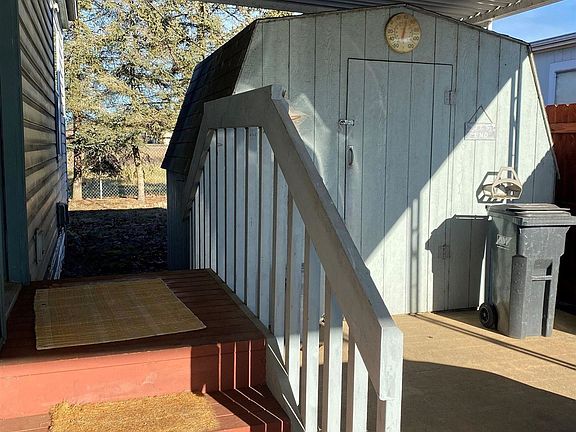 Excellent location at end of the street. Backs up to field & park. This home reflects pride of ownership, move in ready. 2 large bedrooms, 2 bath. Large spacious LR w/vaulted ceilings. Open floor plan. Covered parking area. Shed. All age park. A must see!