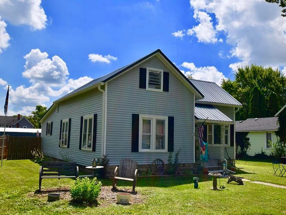 Wow, wow, wow - come check out this 2 story sitting on a corner lot in the heart of Caledonia. Walk around the outside and see the new metal roof and new vinyl siding!! This home features 3 bedrooms, first floor full bath with new vanity, nice living room with bonus space, very open dining and family room with beamed ceiling. The unique step down, very large kitchen is perfect for family gatherings and meal preparation. First floor laundry just adds to the mix. Small basement contains the mechanicals and sump pump. The new privacy fenced in back yard has tons of space plus a covered patio. The huge 20' x 48' out building with freshly painted metal roof has so much to offer! With a little love, it could be an amazing garage or work space.