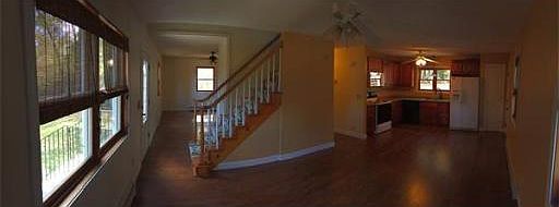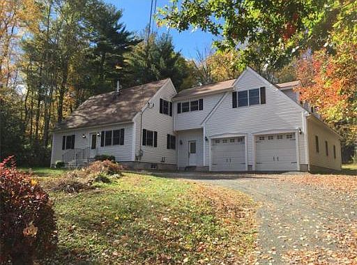 Beautiful Cape Style Home situated high above North Liberty Street in the sought after south end of Belchertown. Spacious 10 rooms, 3 large bedrooms. First floor has a great open floor plan w/ a large kitchen and dining room and open staircase. Kitchen is updated w/new cherry cabinets and granite countertops. First floor office. Second floor offers large Master Bedroom with his and hers double closets and a private deck overlooking a secluded large flat backyard. Four additional rooms on the second floor include two large bedrooms and a half bath. New hand scraped laminate floors throughout. Back yard features a large concrete patio w/ custom built in koi pond with waterfall filtration system perfect for entertaining or relaxing. Large basement for storage or future expansion ( ie. game room, home gym, theater room etc.) Large attached 4 car garage perfect for large family w/ multiple vehicles, hobbyist or contractor. Move in ready as all appliances are included.
