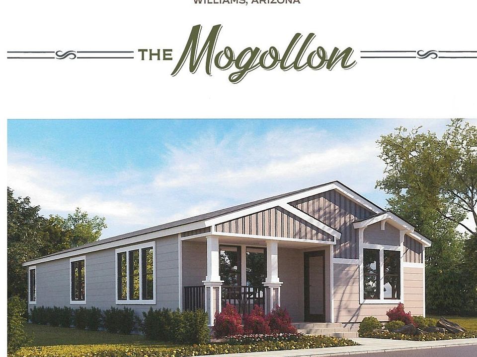 This is the Mogollon Plan in the brand new COMMUNITY NOW SELLING! Welcome to PINE TRAILS in Williams AZ! A brand new community near historic downtown Williams, AZ a few blocks off of Route 66. This is just one of 6 plans offered at PINE TRAILS by Brookfield Communities. These brandnew manufactured home are sure to please whether you are looking for a full time or part time home. MODELS OPEN EVERYDAYUpgrades: Upgrade Front Elevation, 7'-6'' Vaulted Ceiling, Premium Appliance Package (White/Black) Deluxe Interior Package: Lever Door Handles, Rounded Drywall Corners, 200 Baseboard Profile, LED Lighting in Kitchen w/ dimmer, additional ceiling fan prewire, Solartube in Kitchen, Overhead Cabinet in Utility, Window Sills, Soft Close Cabinet Doors and Drawers.