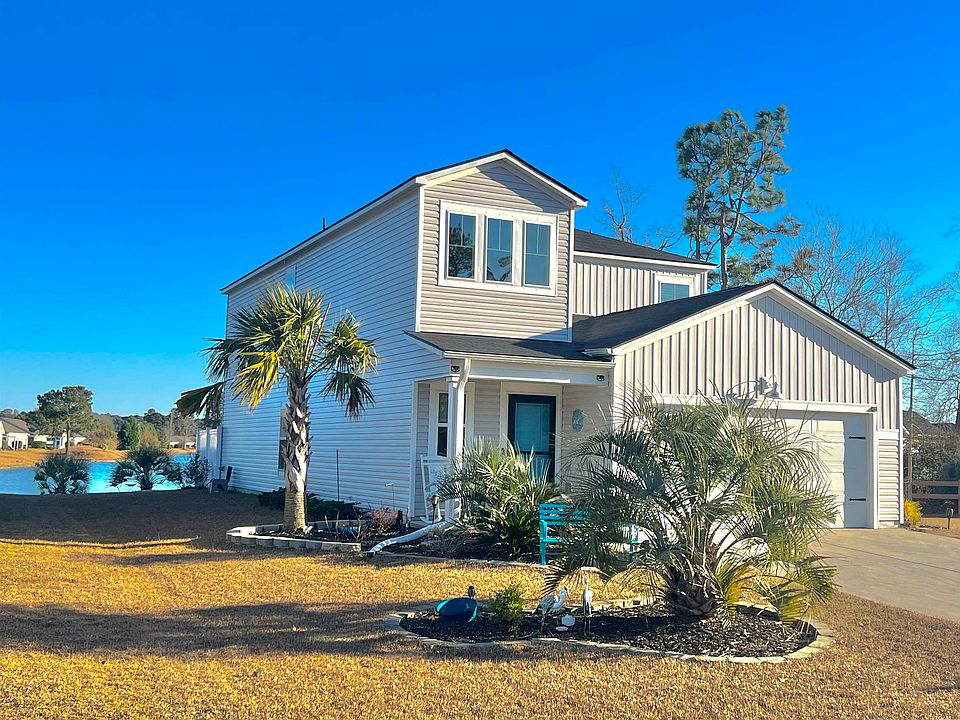 This home is all you need to live a fabulous beach life on the best homesite in the entire Beach Village neighborhood in Surfside Beach! Stunning 5 Bedroom with Masterbedroom on 1st floor, 4 bedrooms upstairs, plus a loft and home has an amazing Lake view, just a golf cart ride to beach, hot tub, and newly built with gas heat & central air all for a great price. Run, don’t walk to become the owner of this fantastic home ! The exterior living on this home does not disappoint with the lake view, hot tub and two maintenance free verandas. Every day is a brand new day sitting and watching the sunrise LAKESIDE sipping your coffee on your comfy rear porch. Evenings are just as special relaxing in the hot tub staring at the stars. Come relax and watch the wildlife in its natural habitat. Swans, geese and ducks are common sights along with other graceful species of birds. When you’re done bird watching at your lake head to the beach. That's so easy to do at this home just 2 miles from the OCEAN! And can be done by golf cart, car or even a decent walk or jog. Other wonderful features include Loft on 2nd floor, 2 car garage,Gas Heat & Central Air, Dual zone thermostats, tankless hot water heater, 9' high ceilings on 1st floor, and the newer washer & dryer is included. Smart Home with Smart features like Ring doorbell and smart garage door app available. Luxury Vinyl Plank Flooring, Granite countertops and White Upgraded Kitchen Cabinets. Stainless Steel Microwave, Dishwasher, Oven and Refrigerator included. Tile Backsplash and walk in pantry. Beautifully crafted tile walk in shower in the Masterbathroom. Second floor bathroom is a Tub/shower combo. Large closets. Generous bedroom sizes. Low Monthly HOA includes Cable Tv, Internet and Trash pickup. Contemporary Beachy Exterior with front and rear porches. Come Chillax at this Beach Retreat and claim it as yours. Nothing left to do but BYOB - Bring your own Bathing suit.