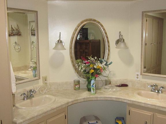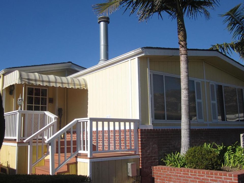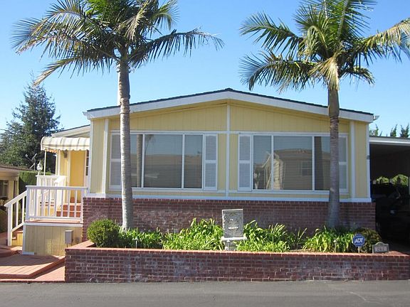 Gorgeous San Vicente triplewide home! Large center living & dining rooms, front family room with fireplace & vaulted beamed ceilings, office, large kitchen, large laundry room, 2 bedrooms, 2 baths, 2 sheds, 3 car parking. Huge master suite with two closets. Mountain views, great location! Space rent $619 per month, gated park with pool, spa & tennis courts! Dual pane windows.
