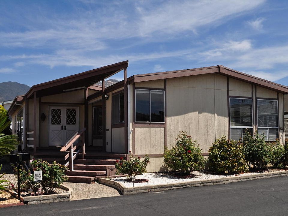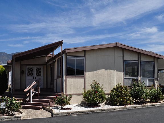 First time offered in 25 years, this Dualwide Premier triple-wide home offers nearly 1,800 sq. ft. o - First time offered in 25 years, this Dualwide Premier triple-wide home offers nearly 1,800 sq. ft. of living space on one level. Newer roof, central air conditioning and carpeting. Center living & formal dining rooms, large and bright front kitchen opens to the family room with vaulted ceilings and a fireplace. Laundry/bonus office room. Largest home for sale in San Vicente! Master suite has two large mirrored closets, mountain views and en suite with stall shower, double vanities and sinks and a jacuzzi tub. Guest bedroom, and guest bath with shower. Custom shed. Concrete driveway. Quake braced foundation. San Vicente is a gated community for adults age 55 or better, with year round heated pool, spa, clubhouse with library, shuffleboard, gym and tennis courts. Space rent INCLUDES all water, sewer and trash!