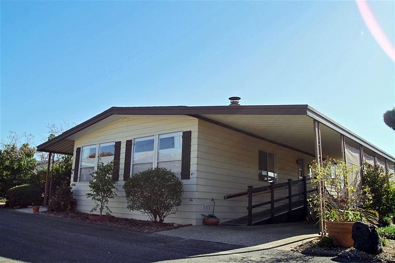 Rare, regular sale, triple wide!!! This one has it all: MOUNTAIN VIEWS, low traffic, prime location, 2bd/2bth, office space, center kitchen, fireplace, front patio, garden shed, 2 vegetable patches, 2 car driveway, mature lemon tree + permitted wheelchair access ramp if desired. Community amenities include tennis courts, pool, spa and gorgeous grounds. Seller is motivated! 55+