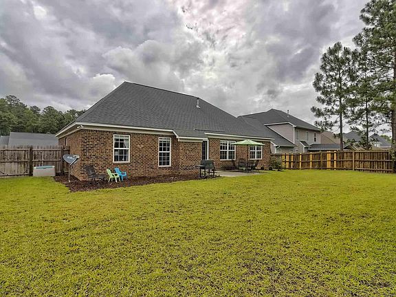 All brick, Essex built home located within Kellers Pond Subdivision. Conveniently located between HWY 378 and HWY 1, minutes to LHS, Publix and Lowes grocery stores. Beautiful entryway with hardwood flooring. Open, split floor plan is perfect for entertaining, formal dining area w/wainscoting and high ceilings flows into the living room space with built-in home entertainment system (speakers and wall mount for easy hook up) gas log FP! Spacious eat in kitchen with island. Master BR on main floor features beautiful tray ceilings, Berber neutral tone carpet and private master bath w/garden tub, separate shower and double vanity. Mudroom/laundry room with built in cabinets. FROG perfect for an office space, media room or play room. Large, level fenced in backyard. Sprinkler system with automatic timer and rain gauge covers entire yard.
