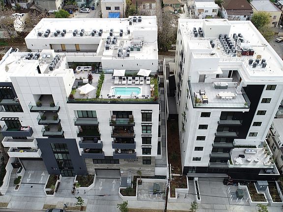 Private balconiesBreathtaking views of dtlaStainless steel appliancesStone countertopsExpansive rooftop pool deckSmart washers and dryers
