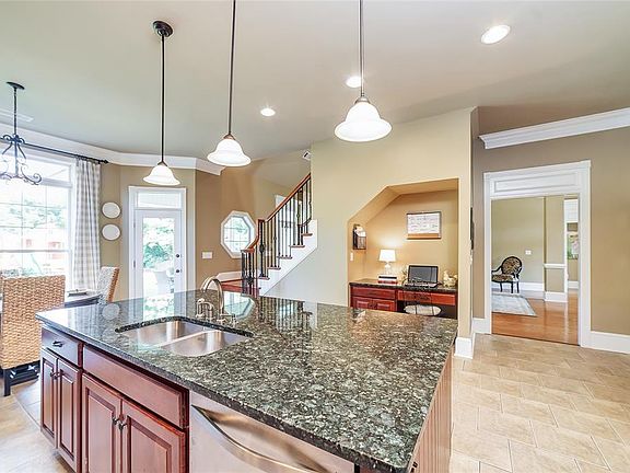 Sitting on 1.8 acres of land you will find this awesome home. This home is filled with upgrades galore which include smooth ceilings with extensive crown molding, wood flooring, and volume ceilings. The dining room is open to the large family room. The large kitchen features loads of custom cabinets, a supersized work island complete with the kitchen sink, granite counters, and a tile backsplash. The kitchen also offers a pantry and recessed lighting, a recipe desk and the large breakfast room. The family room features both recessed and fan lighting and has a vent-less gas log fireplace. The master suite offers a huge walk-in closet, a double sink vanity, a separate water closet, a garden tub, and a large separate shower. The second bath sits on the main floor with the second bedroom,.and the other 2 bedrooms along with the large bonus room sit upstairs with a the third full bath, The covered back porch has plenty of space to entertain. The garage offers floored attic space and parking for 2 vehicles. Additional exterior features include vinyl trim, stone accents, an underground sprinkler system for the yard, a newly privacy fenced in rear yard, new beautiful landscaping all around with outdoor landscape lighting, a covered front porch, and an great security system with several outdoor cameras. This subdivision also features a fishing lake and outdoor recreation area. We look forward to your visit soon...