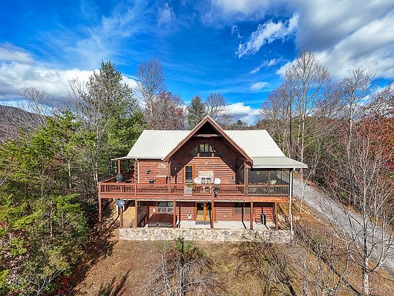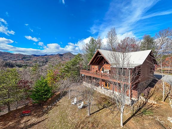 This 3 bed 2.5 bath cabin built by local craftsman is less than 2 miles from the Deep Creek entrance to the GSMNP & Downtown. As you drive up Redwood Ridge you are met by a stone gate leading to the top of the Ridge with views of the surrounding mountains. Once inside you will find touches and features rarely but together in a cabin with an open design, the gourmet kitchen has high end appliances, and a hand cut L shaped granite island overlooking the dining area which has a gas stone fireplace and a door leading to the upper deck with 2nd gas stoned fireplace. The great room features custom built bookcases, a covered screened porch and the half bath w/full size W/D. Off the open foyer is a walk-in pantry. The large ensuite has a bathroom built to accommodate all with stoned shower ample closets and a separate covered deck. The lower level has 2 bedrooms, 1 full bath and a great room with doors leading to another covered porch with a hot tub. There is separate utility room with W/D hookup n storage. Outside you'll find a fire pit, natural landscaping, tiered herb garden, covered grilling station and a matching shed. New Survey completed.
