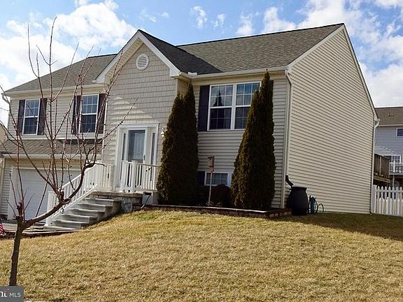 BEAUTIFUL SPLIT FOYER HOME! 3BR 2BA in Chestnut Valley! Open floor plan with combination Living Room-Dining Room-Kitchen with vaulted ceiling & laminate floor. Kitchen has a large breakfast bar & some appliances~Dining Area has sliding doors that open to rear deck. Master Bedroom has carpet, walk-in closet & Master Bath. Bedrooms 2 & 3 have carpet. Unfinished lower level has a laundry with washer/dryer hookups and large storage area. Oversized 2 Car garage with electric garage door opener. Wooden Deck that steps down to rear yard with vinyl fencing and includes playset.