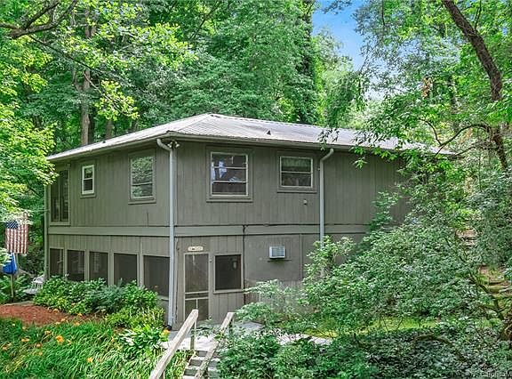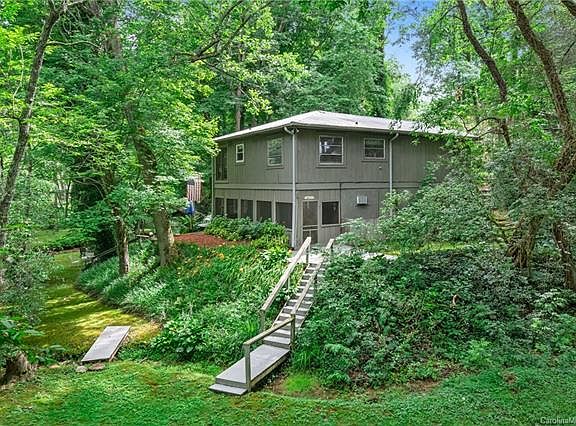 Awesome creek-front property located just 15-20 minutes from downtown Brevard! Charming inside and out. You must see this property to appreciate the beauty, peace and tranquility of the babbling brook and surrounding woodlands. This secluded private mountain cottage offers a spacious living room with stone fireplace, 2 bedrooms, a bath, utility room, dining room with unique carved wood white squirrel chandelier, kitchen and large sun room on the main level where you can sit and enjoy views of the creek and lake. Downstairs you will find another spacious bedroom, bathroom, office, cedar-lined walk-in closet, upright freezer, a large screened porch with water view and a workshop. Outside there's a separate carport, small barn and a fire pit down by the creek where you can sit and relax while enjoying the water view. Across from the house is an additional lot. Use this extra land for gardening, or for parking your RV. Walk to the East Fork of the French Broad river to go fly fishing!