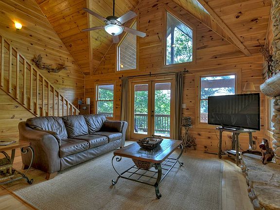 Are you in need of an GAltitude Adjustment?G Atop Ruby Gulch, your mountain retreat awaits you where you can happily escape the cares of the world! You'll enjoy the most picturesque scenery as you travel along stunning farmlands and mountain views to this cabin. The location allows you to feel completely secluded yet is just a quick drive to the city of Morganton, as well as Blue Ridge, and natural amenities are just a hop, skip & a jump with the swinging bridge, Toccoa River & Lake Blue Ridge just down the road. This private oasis has been a great nightly rental G guests love the home & view, and you're sure to, too! You'll appreciate three levels of living space, decks to enjoy the year-round mountain view, and stone fireplaces. The main level living space offers soaring ceilings that unite the kitchen, living room & dining area. You'll appreciate wood throughout the home giving it a warm and rustic feel. Other highlights include a bedroom and bathroom on each level with a large sleeping loft upstairs. Your mountain dream come true...