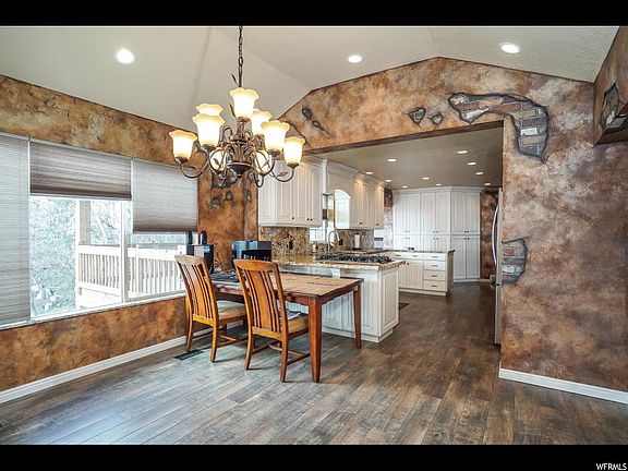 FANTASTIC VIEWS! Wooded area, look at the mountains, lake and valley off your private deck and master bedroom sitting room. Large gourmet kitchen with double convection oven and formal dining room. TOTALLY UPGRADED HOME!! Large Workshop approx 25x26. Secondary Water, big lot, newer roof and appliances. Quiet neighborhood in the desirable Centerville bench area. Huge Theater room with walkout basement. Deep garage fits 2 small cars. Another 1/2 garage next to it. This home will sell FAST. SQ footage per County Records, buyer to verify.