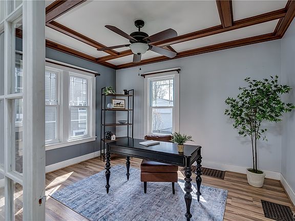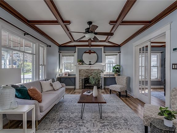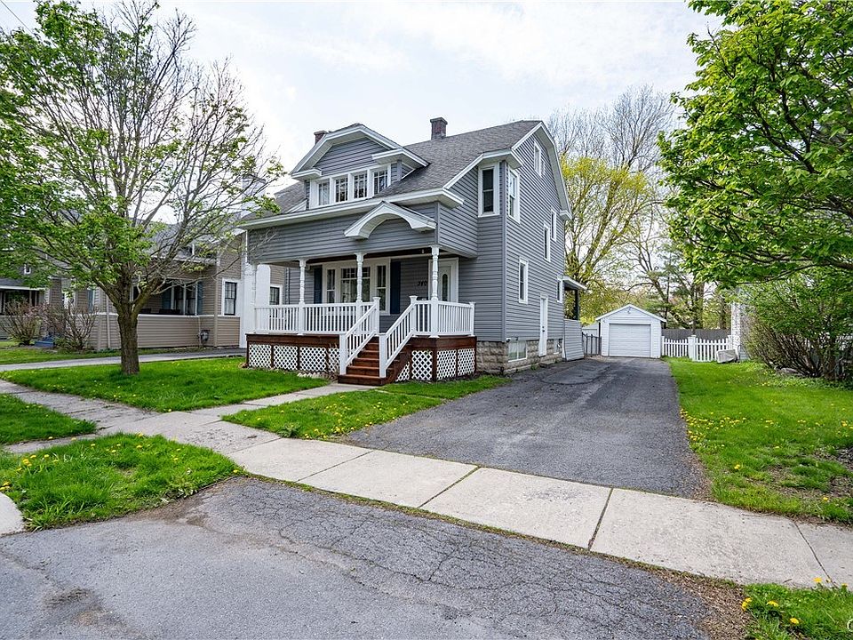 City home next to the infamous Thompson Park! When pulling up to this city home, you will instantly notice the curb appeal with covered front porch. The beauty does not stop there. Once inside, you will drawn to the coffered ceilings-a high end architectural design. The living room with fireplace and built in bookshelves lead you to the first floor bonus room. Think home office, playroom, or first floor bedroom. Moving along is your kitchen with an open concept to the dining room and back deck. Upstairs are three more bedrooms with hardwood floors, full bath, and sun porch that could be utilized as a sleeping area. Each bedroom has great closet space. Finally outside is the perfect fenced in yard and garage. It doesn't get better than this! Close to Thompson Park, shopping, and Fort Drum.