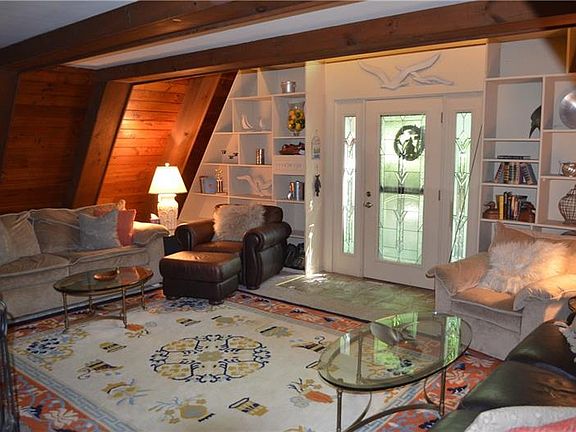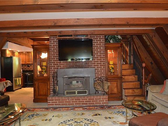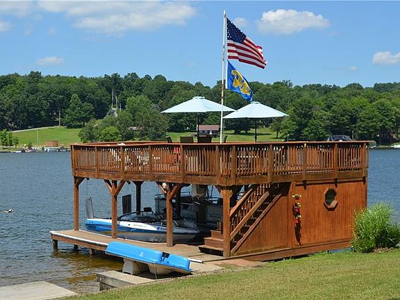 Glorious days will be yours when you own this little piece of paradise at beautiful and private Indian Lake! This charming A frame chalet is so welcoming with lots of character from the open living area with cathedral beamed ceiling and fireplace and the efficient kitchen with breakfast bar. Custom built ins grace the living room; fireplace is flanked with lighted curio cabinets. Master bedroom with full bath is conveniently located on the main level; stairs lead up to an adorable loft area for extra sleeping/office/sitting area--whatever your preference. Two guest bedrooms and a full bath are located a few steps down to the lower level along with a bonus room which would be great for entertaining family and friends. A path behind the home leads to one of the huge attractions of the great property--25 feet of deeded waterfrontage complete with a fabulous boat house with electric large enough to accommodate two watercraft. The sun deck on top has stunning panoramic lake views.