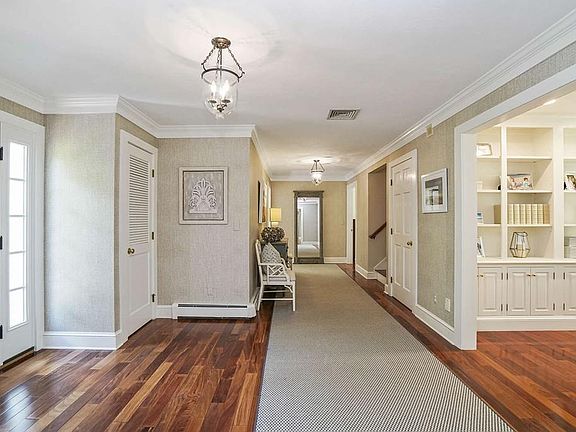A winding driveway, lined w/ lovely hydrangeas leads to this private 3.94 acre estate setting and this truly unique, custom built 11 Room Cape w/ a most appealing floor plan! Gourmet Eat-In Kitchen w/ stunning granite, Island and bay window. 4200 sq ft of luxurious living with mahoghany and cherry floors, 1st floor skylit bedroom w/ new master bath, library, sunroom, leads to enclosed porch~Formal dining and Fireplaced living rooms w/ custom built ins. Au Pair/In Law separate suite! Close to schools.